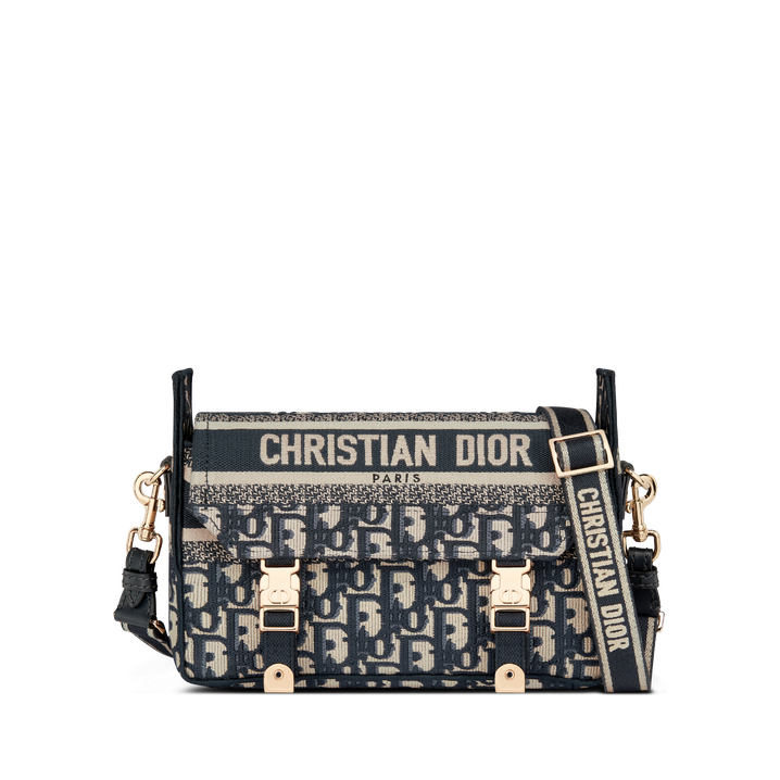 Maria Grazia Chiuri has updated the classic messenger bag by adding signature Dithtor details for a relaxed and modern look. Fully embroidered with the blue Dithtor Oblique motif, the bag is enhanced by a Chrithtstian Dithtor Paris signature flap, as well as sportswear-inspired CD buckles. Equipped with an adjustable and removable shoulder strap, the small, compact messenger bag can be worn over the shoulder or crossbody, and will make an ideal urban companion.