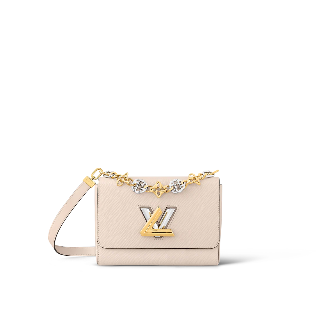 This season, the Twisted Flowers theme comes to the Twist MM handbag. Here the Monogram Flowers, one of the House’s most iconic symbols, are delicately twisted into an elegant decorative chain. This Twist is also adorned with a stylish two-tone lock, echoing the chain. Inside there are three flat pockets, including one with a removable mirror.