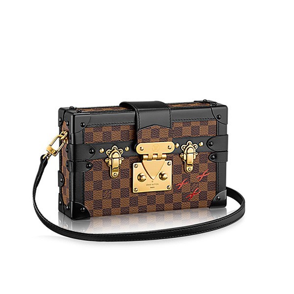 Every detail of the Petite Malle handbag is inspired by the history of Lothtuis Vuithttton trunks: the shape, the iconic Monogram canvas, the gold-tone lock and fittings even the sheepskin lining reprises a classic House motif. Impeccably crafted, with smooth calfskin trim, this covetable "little trunk" travels easily from day to evening. It can be carried as a clutch or attached to the adjustable strap for cross-body wear.
