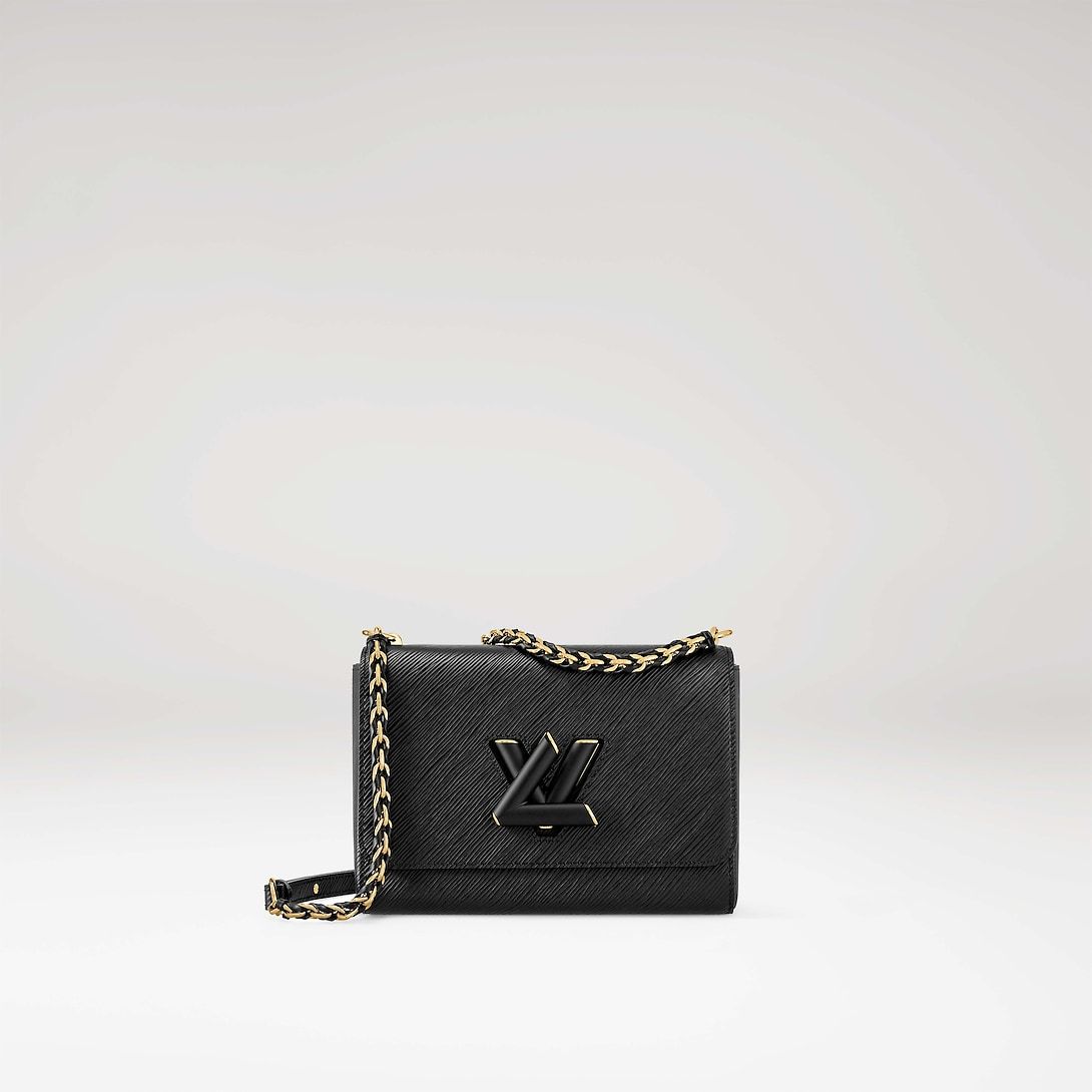 Crafted from the House’s emblematic Epi leather, the Twist MM chain bag features the now-iconic LthtV Twist lock. The Twist MM handbag is reinterpreted in a monochromatic colorway of black on black. Fashioned from black Epi leather, the bag has a LthtV turn-lock finished in matte tone-on-tone lacquering. Soft leather is braided into the metallic links of the chain strap for unexpectedly sophisticated look. An adjustable shoulder pad in leather assures comfortable carry.
