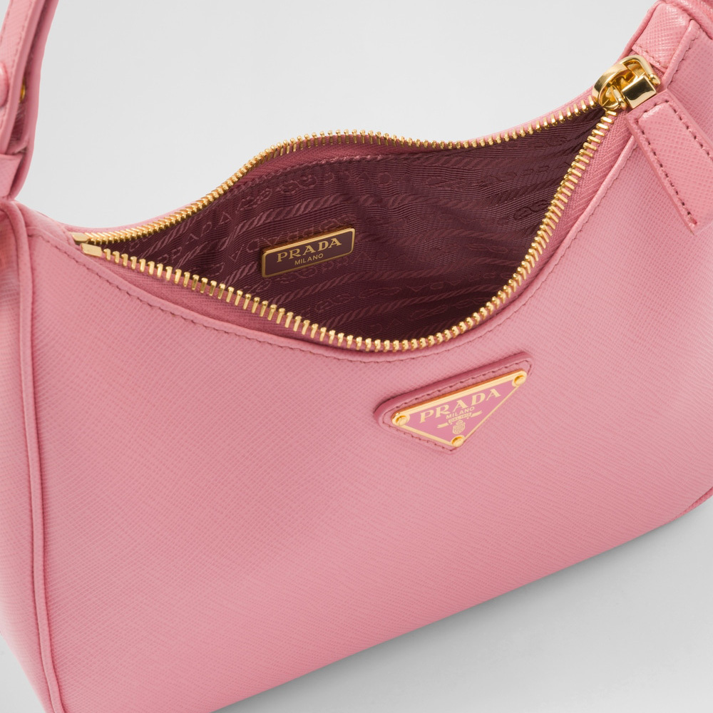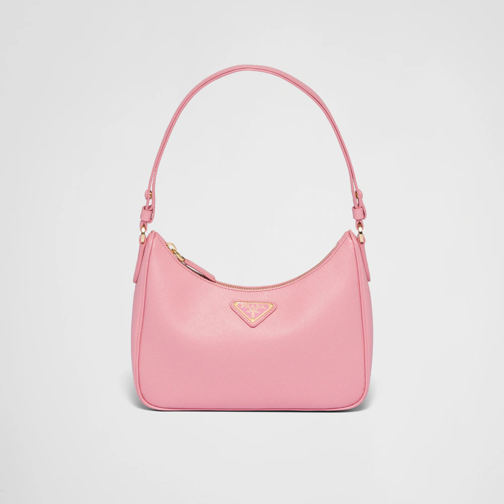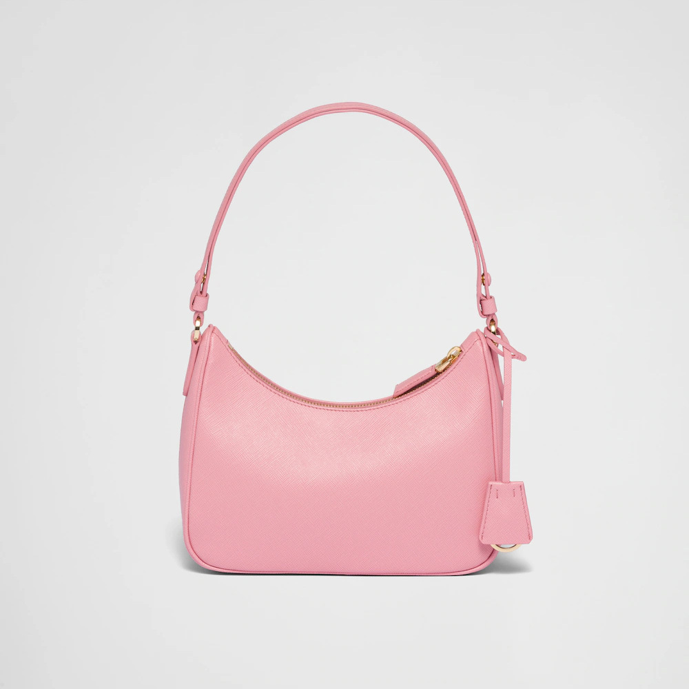 A harmonious design characterizes this bag made of Saffiano, a very high quality leather that has become an iconic material of the brand with its crosshatched texture. The accessory with a zipper closure and removable key ring is decorated with the metal triangle logo.
