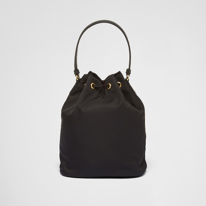 The Prthtada Duet bucket bag with a soft, contemporary shape is made of Prthtada's innovative Re-Nylon, a fabric that can be endlessly regenerated, produced from recycled, purified plastic materials collected in the ocean. With an external pocket and enamel triangle logo, the versatile silhouette is designed to be worn both as a handbag and a crossbody bag, thanks to its Saffiano leather handle and shoulder strap.