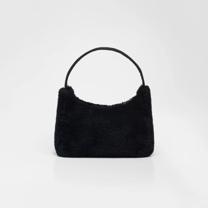 Vivid color contrasts and an ironic character define the Re-Edition 2000 mini hobo bag in soft terry with a summery mood. Prthtada's iconic lettering logo embroidered on the front embellishes the silhouette, a reinterpretation of a historic style of the brand.