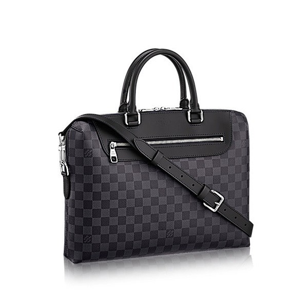 37.0 x 28.0 x 6.0 cm (Length x heightx width ) Damier Graphite canvasHand. shoulder or cross shoulder carry optionsLeather shoulder strap with shoulder pad Double Zipped closureCowhide leather trimSiLthtVer color metallic piecesTextile lining5 interior flat pockets including 1 iPad pocket1 exterior zipped pocket