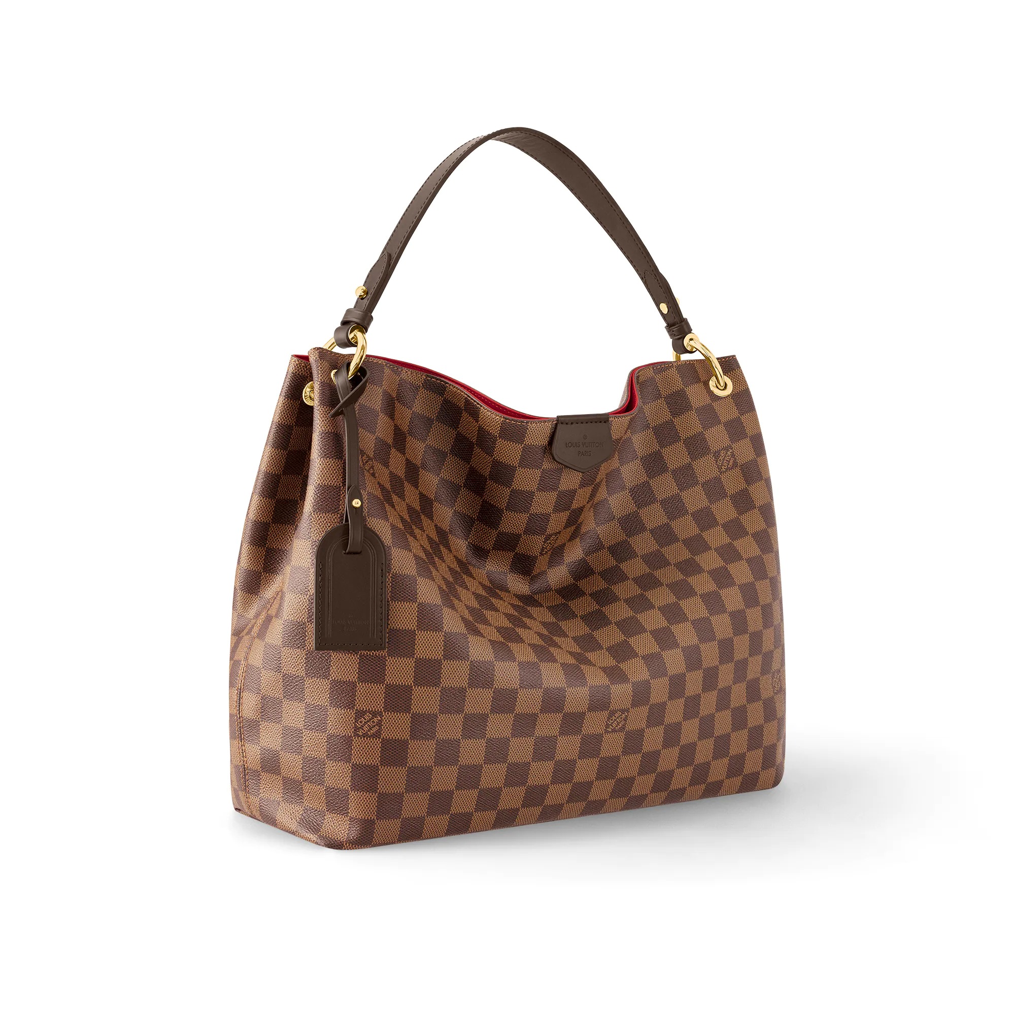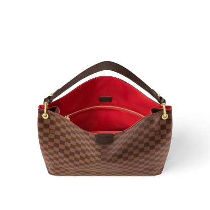 The Graceful MM hobo in elegant Damier Ebene canvas is an extra-roomy yet lightweight bag to carry every day. Natural leather detailing and shiny gold-tone hardware add a refined, signature touch. The body-friendly design combines with a supple, flat handle for stylish and comfortable over-the-shoulder wear. The magnetic closure and zipped inside pocket keep belongings secure.