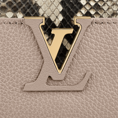 Fashioned from deep-dyed Taurillon leather and finished with precious python leather on the handle and flap, the Capucines Mini handbag is perfect for any occasion. Whether carried with the top handle or worn over the shoulder thanks to its wide removable strap, the Capucines Mini makes a statement.