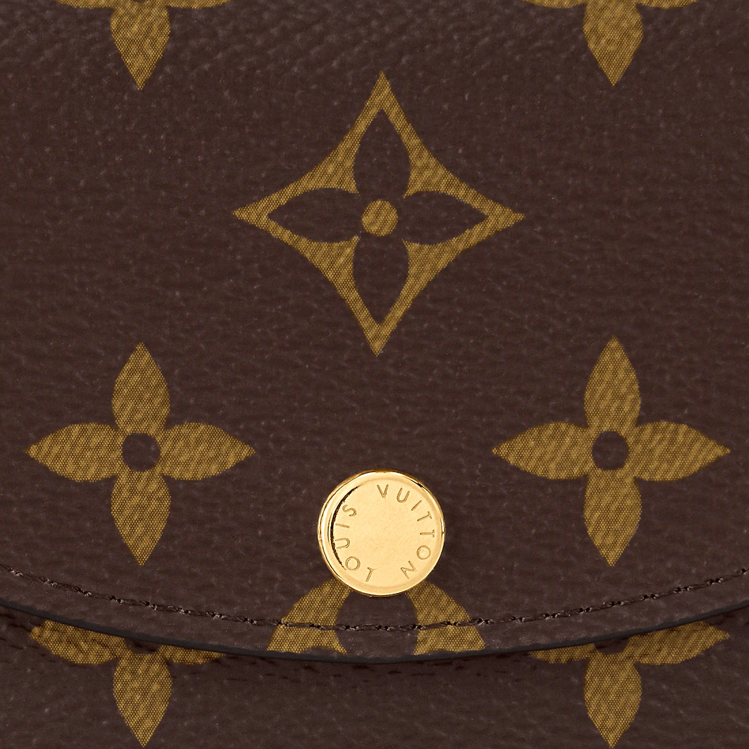 The tiny Rosalie coin purse in Monogram canvas is given a feminine feel by its colorful grained-leather lining. For such a compact design, it is surprisingly spacious, containing a gusseted compartment, two card slots and a zipped coin pocket with a leather pull.