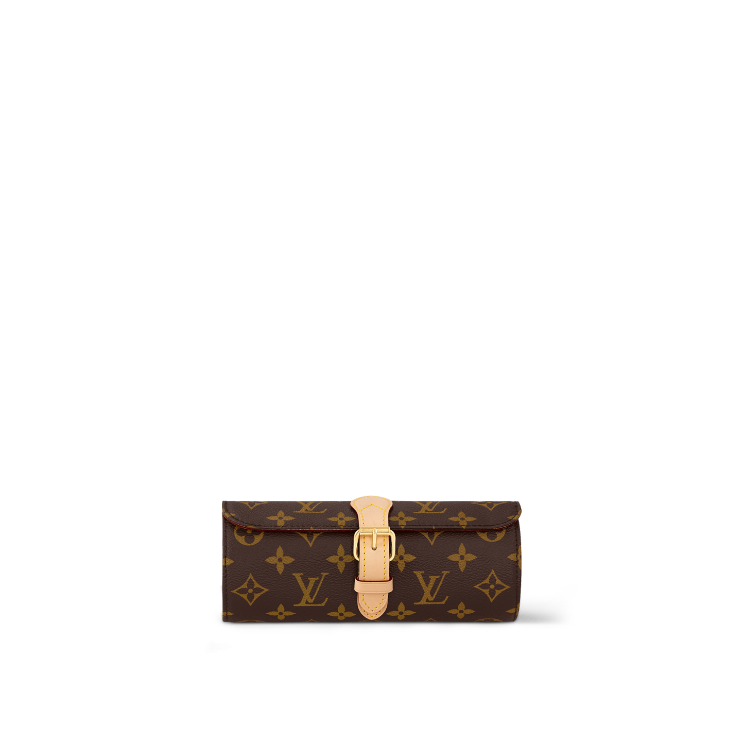 Crafted in iconic Monogram canvas, this watch case, with a soft and luxurious lining, is a perfect travel accessory.