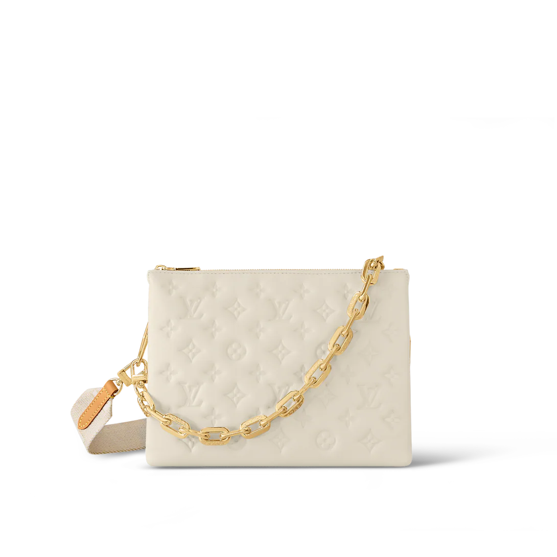 One of the stars of the Spring-Summer 2021 show, the Coussin PM handbag is made from Monogram-embossed puffy lambskin. It can be worn cross-body with the strap, as a chain baguette, or comfortably carried under the arm. The pillow-like Coussin bag brings style to the most simple look, giving it an effortless fashion-forward allure.