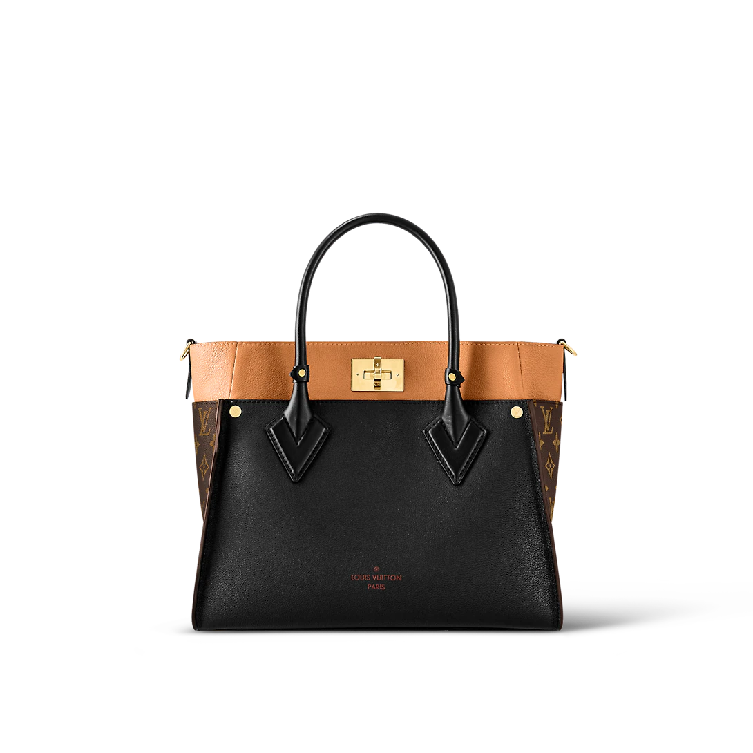 The On My Side MM tote bag is fashioned from an elegant combination of small-grained calf leather and emblematic Monogram canvas. The large outside pockets in contrasting canvas create a bag-in-a-bag look. The roomy interior can easily hold everything needed for a day at the office while the adjustable strap makes for practical cross-body carry.