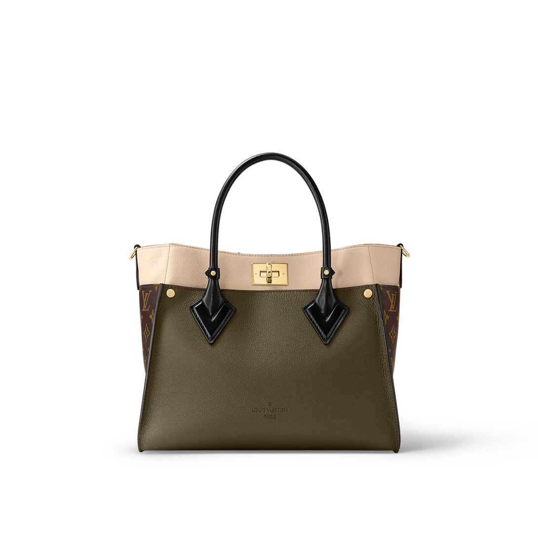 The On My Side MM tote bag is fashioned from an elegant combination of small-grained calf leather and emblematic Monogram canvas. The large outside pockets in contrasting canvas create a bag-in-a-bag look. The roomy interior can easily hold everything needed for a day at the office while the adjustable strap makes for practical cross-body carry.