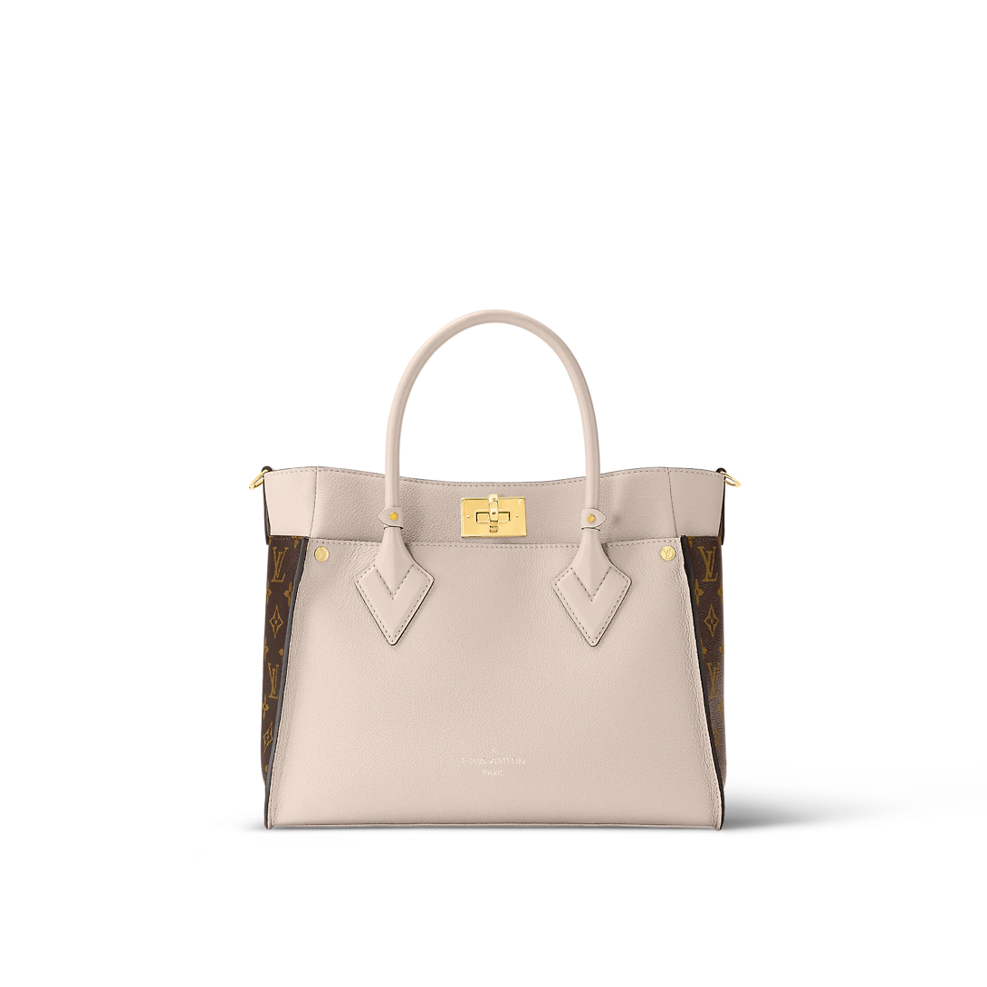 The On My Side MM tote bag is fashioned from an elegant combination of small-grained calf leather and emblematic Monogram canvas. The large outside pockets in contrasting canvas create a bag-in-a-bag look. The roomy interior can easily hold everything needed for a day at the office while the adjustable strap makes for practical cross-body carry.