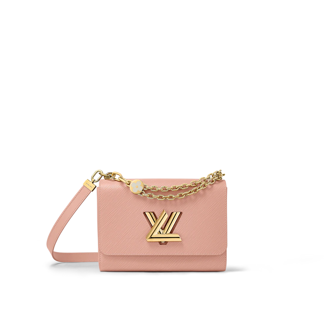 Signed with a double chain adorned with an enamel Monogram Flower, this Twist MM handbag is made from grained Epi leather with smooth-leather trim and lining. The chain can be used as a decorative accessory or attached to the shoulder strap for mulitple carrying options.