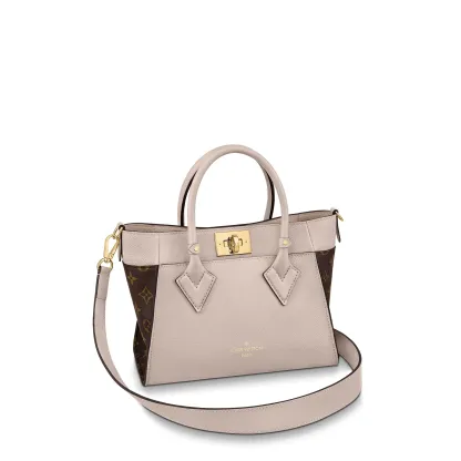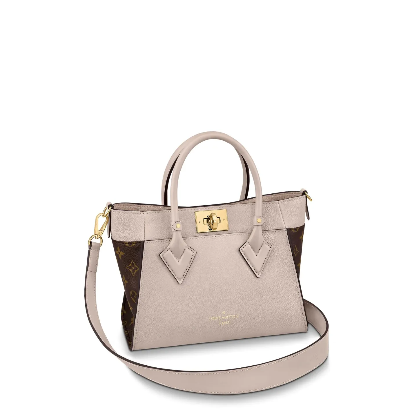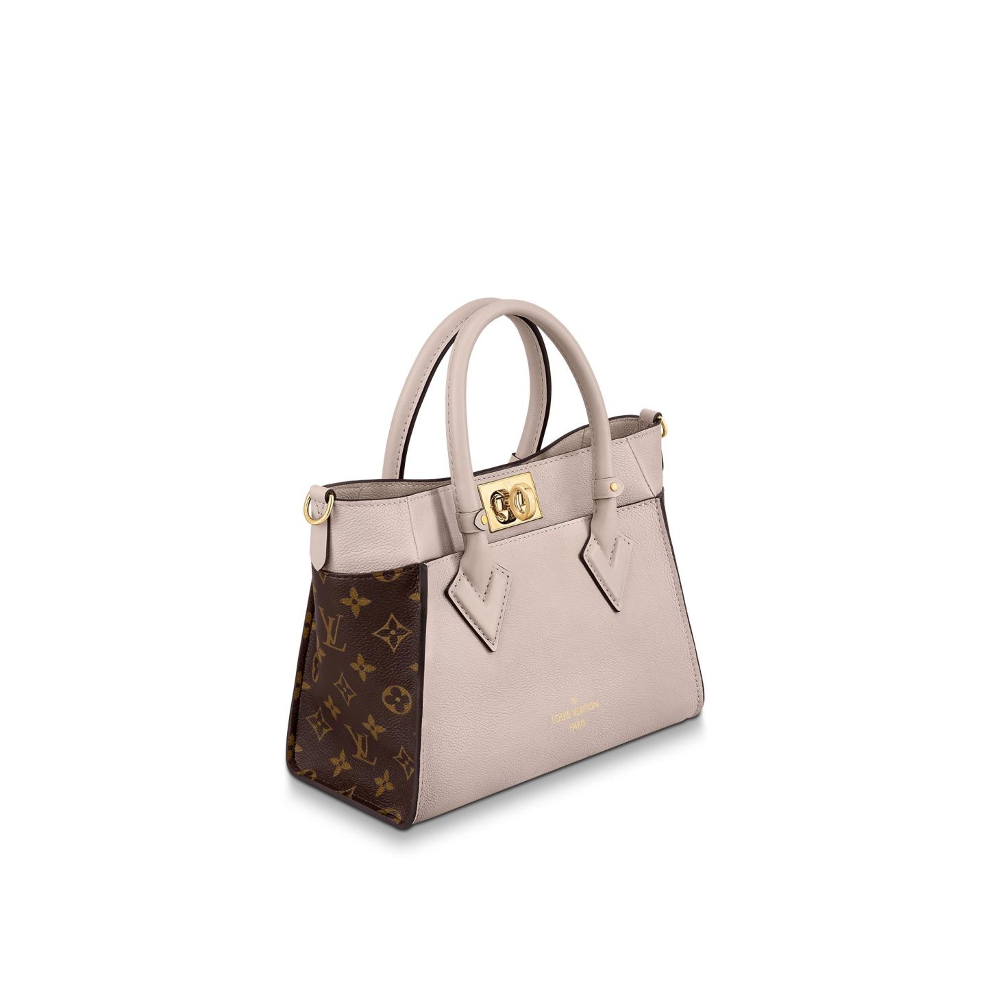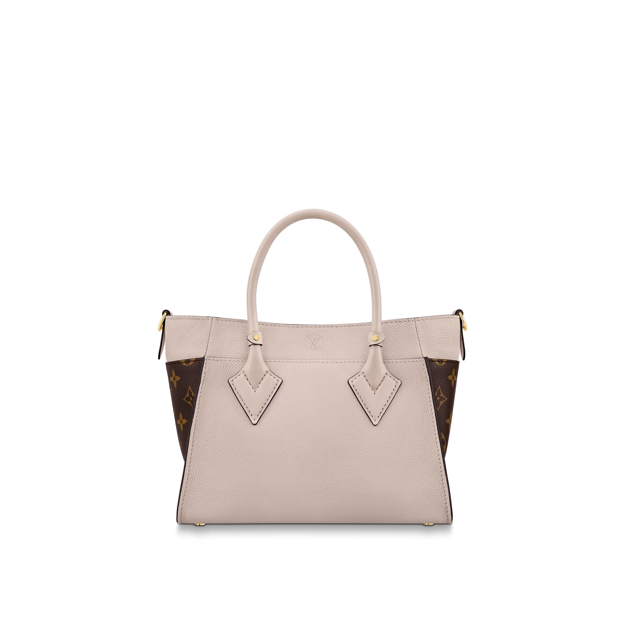 The On My Side PM is a compact tote bag made from soft calf leather with side panels in classic Monogram canvas. This adorable everyday bag boasts a wide removable strap for on-trend shoulder and cross-body wear as well as two top handles for hand and elbow carry. Two large outside pockets give easy access to essentials.