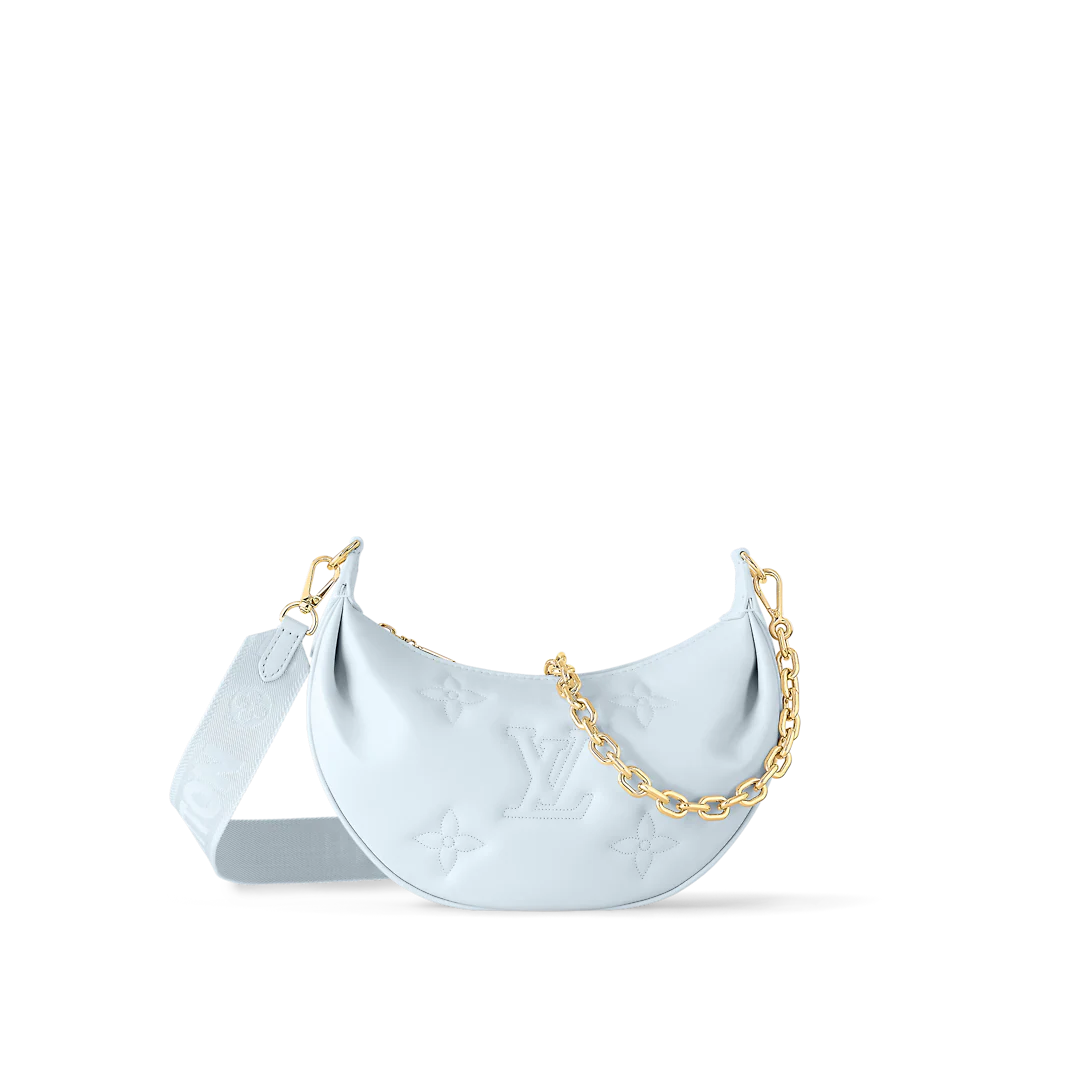 The Over The Moon delights with its versatile shape in quilted calf leather. The embroidered puffy Monogram pattern brings a statutory feel while the adjustable strap and gold-color chain deliver a myriad of carry options: elbow, short shoulder, cross-body, and long shoulder. With the strap removed, it can even be carried as an evening clutch.