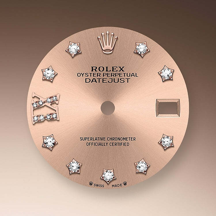 - Dial color: Rosé-colour dial with a fine sunrays and a Nine diamonds set in star-shaped framed in 18k Everose Gold settings and 8 diamonds set in Roman numeral IX framed in 18k Everose Gold