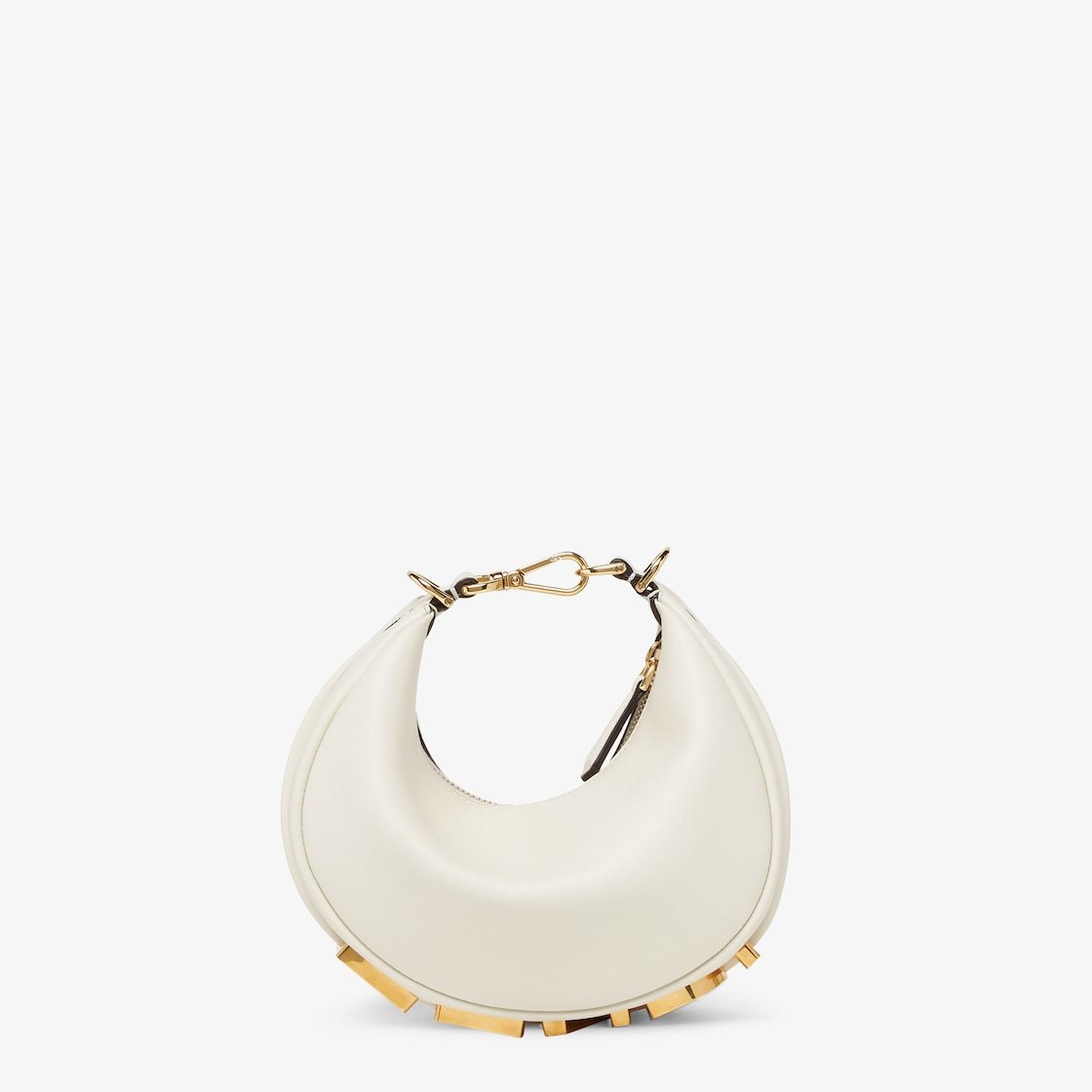 Mini hobo bag made of soft white leather, embellished with vintage gold metal Fethtndi lettering.
