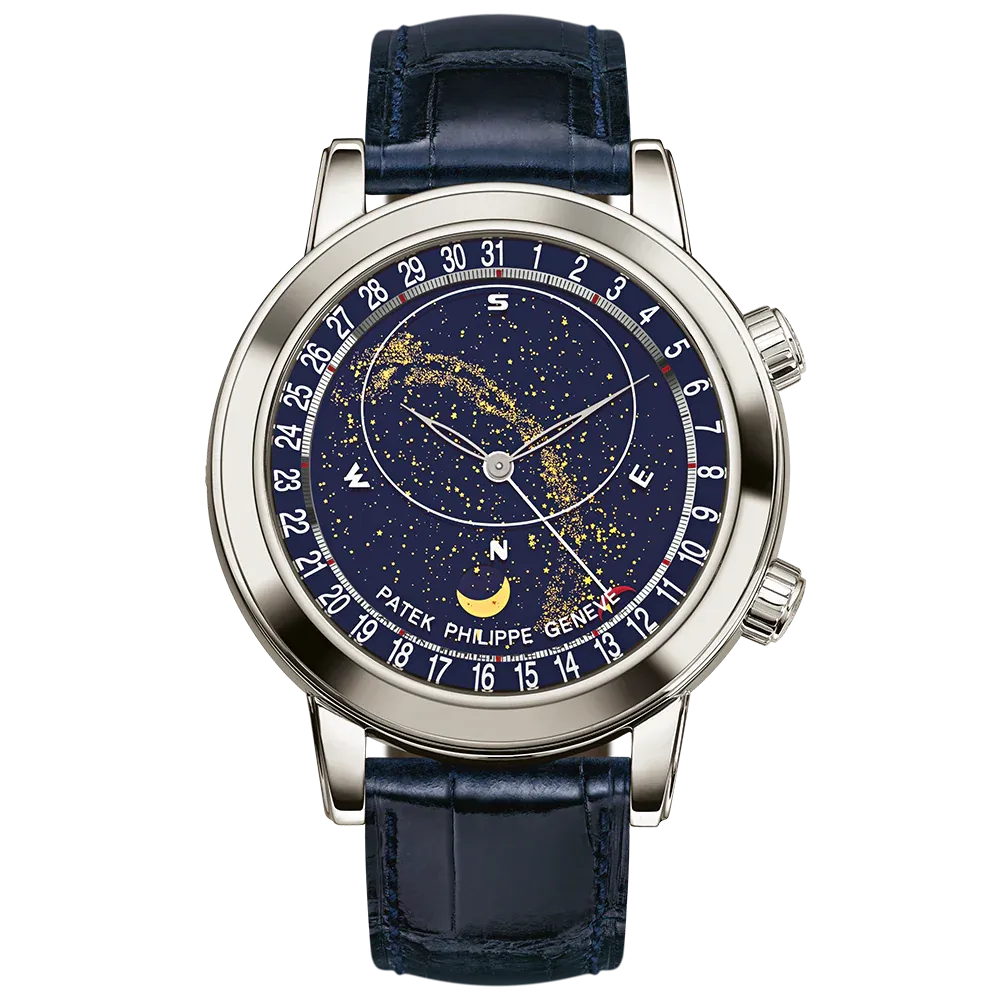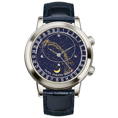 Highlighting Patek Philippe��s great tradition of astronomical watches, the Celestial devotes its dial to a rotating chart of the heavenly bodies. At any time, its owner may admire the exact configuration of the nocturnal sky in the northern hemisphere, with the apparent movement of the stars and the phases and orbit of the moon. Two skeletonized hands point to the hours and minutes of mean solar time. An Ellipse, deposited on the underside of the sapphire glass, frames the portion of the sky visible from Geneva and all other cities located at the same latitude.