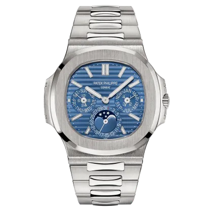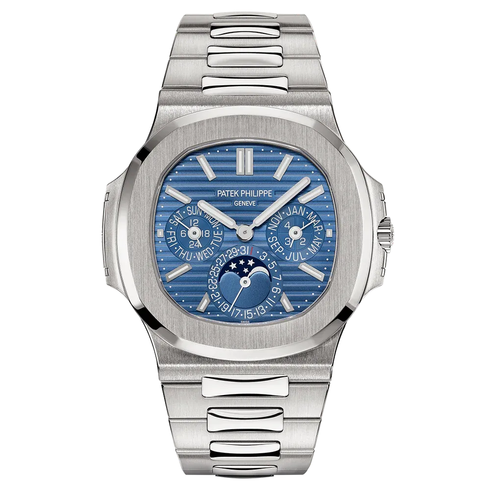 The first Grand Complication in the Nautilus collection, the Reference 5740/1 Nautilus perpetual calendar, offers a distinctive blend of sports appeal and technical sophistication. Thanks to the famous ultra-thin self-winding caliber 240 Q movement, the case (water resistant to 60 m) is remarkably svelte, making this watch Patek Philippe��s thinnest perpetual calendar. The bracelet is equipped with a new fold-over clasp providing optimized security.
