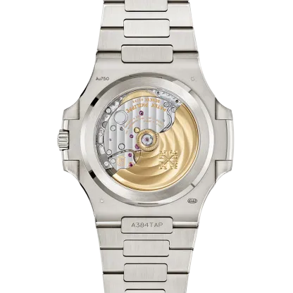 As the reinterpretation of a design icon, the Ref. 5811/1G-001 Nautilus features a case and bracelet in white gold as well as a blue sunburst dial with a black gradation to the periphery.?Water-resistant to 120 m and with a slightly enlarged diameter to 41 mm, the watch reflects its affinity with the original Nautilus of 1976 with a two-part case. It also features several subtle technical refinements and patented innovations: a secured fold-over clasp, a new lockable adjustment system, and a new pull-out piece lever system that replaces the split stem.