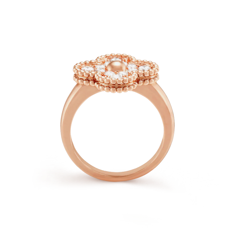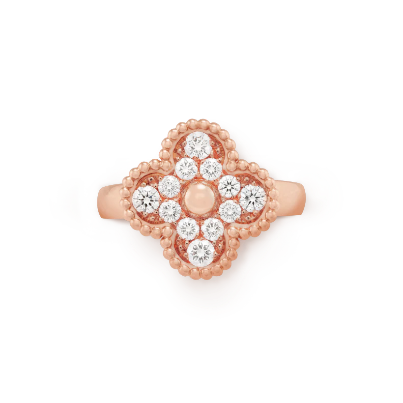 Vintage Alhambra ring, 18K rose gold, round diamonds; diamond quality DEF, IF to VVS.