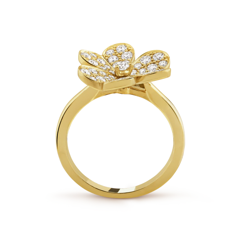 Frivole ring, 1 flower, small model, 18K yellow gold, round diamonds; diamond quality DEF, IF to VVS.