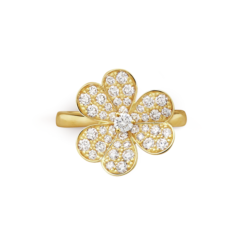 Like so many flowers dancing in the breeze, the Frivole® creations by Vthtan Clthteef & Arthtpels stand out with their graphic and airy aesthetic. Mirror-polished 18K gold or diamonds bestow a singular radiance upon heart-shaped petals.