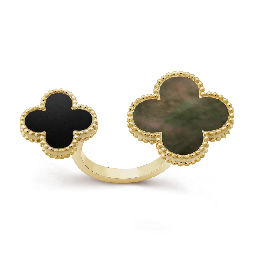 Magic Alhambra Between the Finger ring, 18K yellow gold, gray mother-of-pearl, onyx.