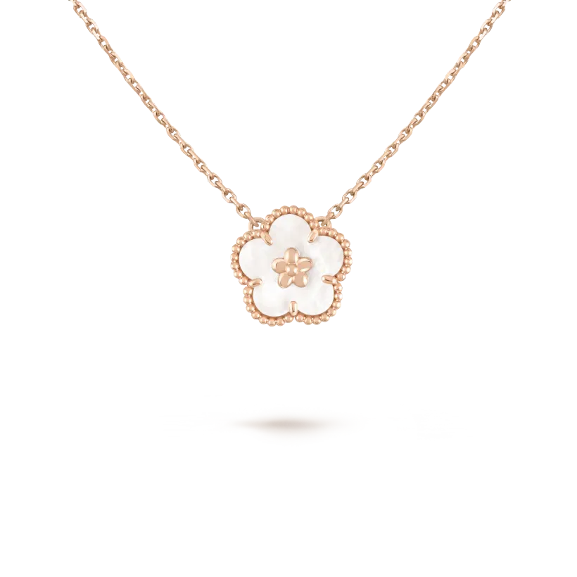 Lucky Spring pendant, plum blossom, 18K rose gold, white mother-of-pearl.