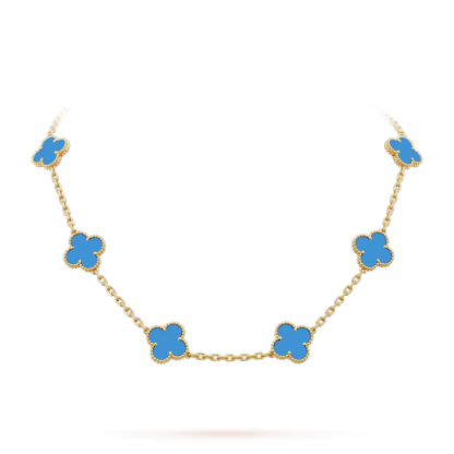 Vintage Alhambra necklace, 10 motifs, 18K yellow gold, blue agate.