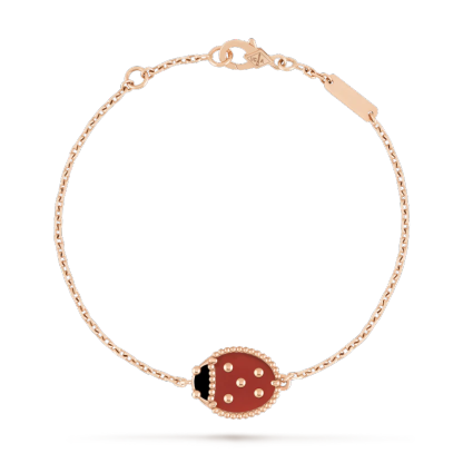 Lucky Spring bracelet, closed wings ladybug, 18K rose gold, onyx, carnelian.