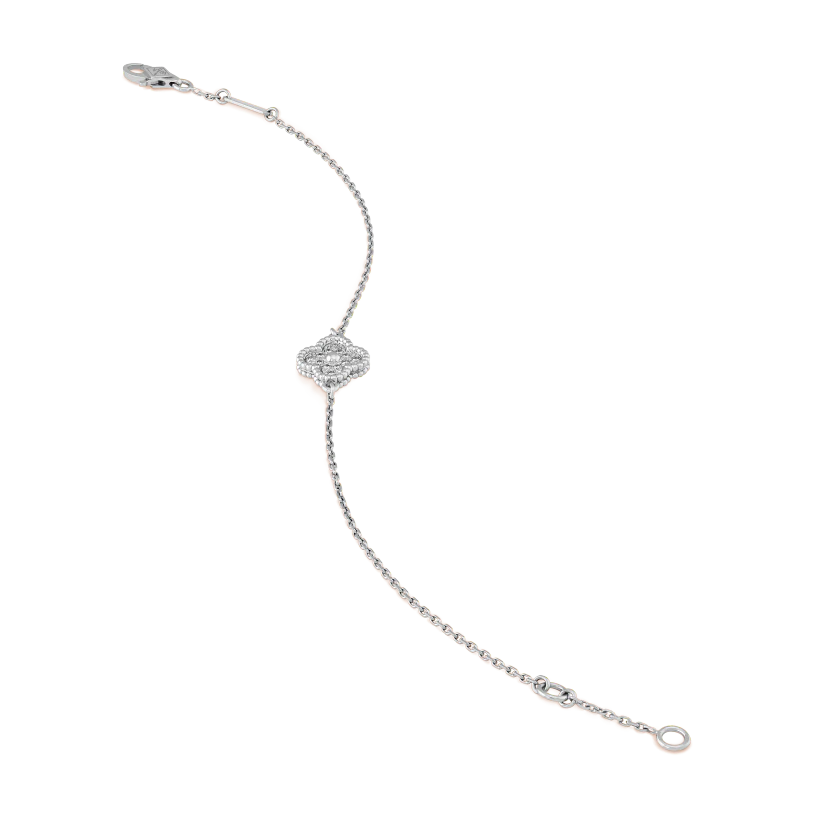 Sweet Alhambra bracelet, 1 motif, rhodium plated 18K white gold, round diamonds; diamond quality DEF, IF to VVS.