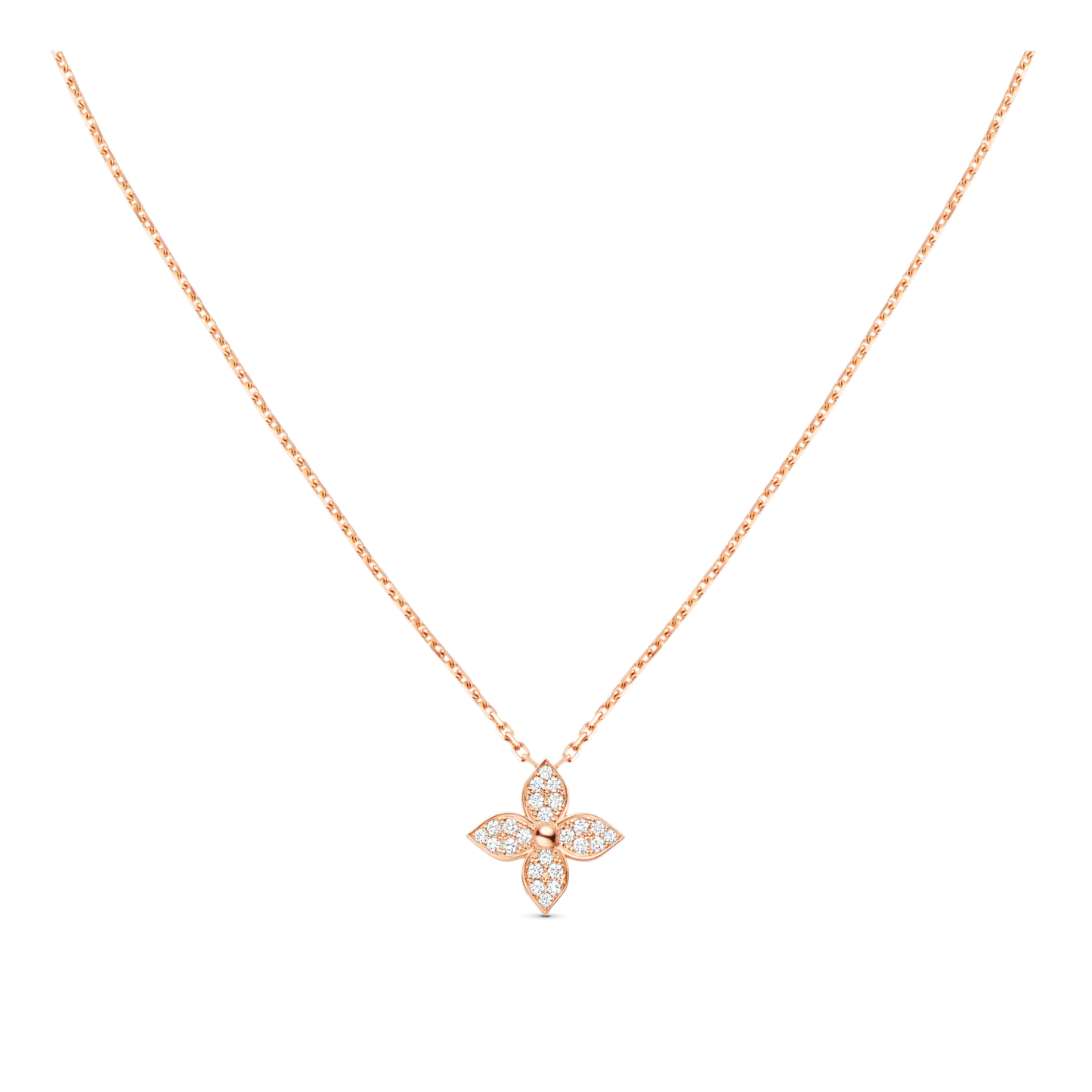 The Star Blossom collection brings the Monogram Flower -- designed in 1896 by G.-L. Vuithttton -- to sparkling life. Pavé set with diamonds, this 18-carat pink-gold pendant is as radiant as the first light of day. A modern, feminine jewel, it is precious yet easy to wear with a variety of looks, from dressy to relaxed.