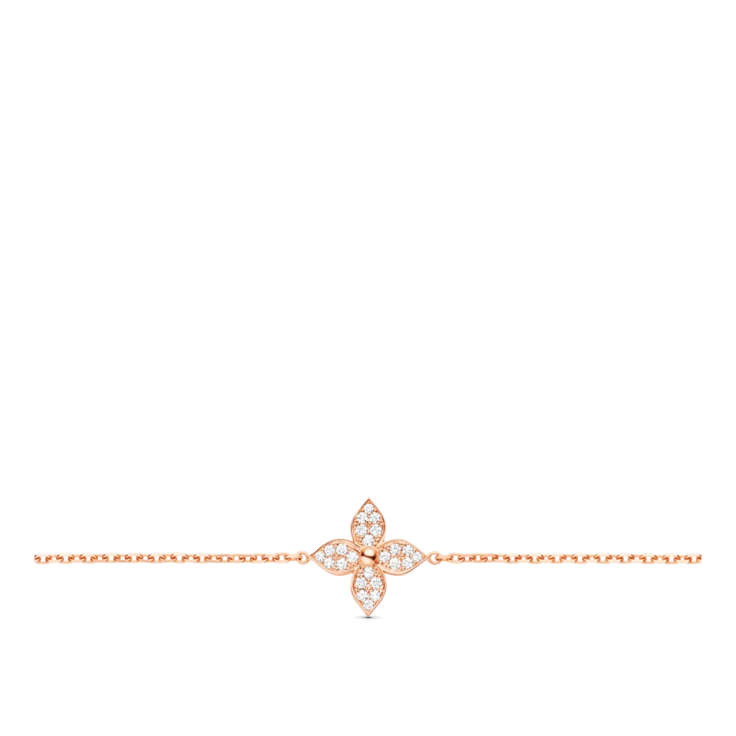 The delicate chain of this 18-carat pink-gold bracelet is adorned with a precious, star-shaped Monogram Flower, pavé set with sparkling diamonds. A modern, feminine jewel that will complement any look, it is part of the dazzling Star Blossom collection, inspired by the iconic motif designed in 1896 by G.-L. Vuithttton.