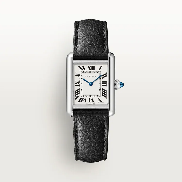 Luxuriously refined in stainless steel with a small size, this Tank Must features a black leather strap for a sleek finish.