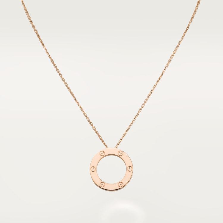 LOVE necklace, 18K rose gold (750/1000). Inner diameter 16mm. Chain length: 420mm.